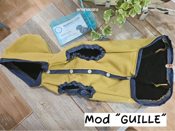Modelo GUILLE: este abrigo es con capucha, abotonado por debajo, evitara que se moje ya que su diseño le cubre casi todo el cuerpo